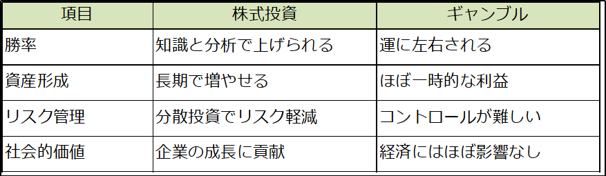 → 株式投資は「資産形成の手段」、ギャンブルは「娯楽」なのです!