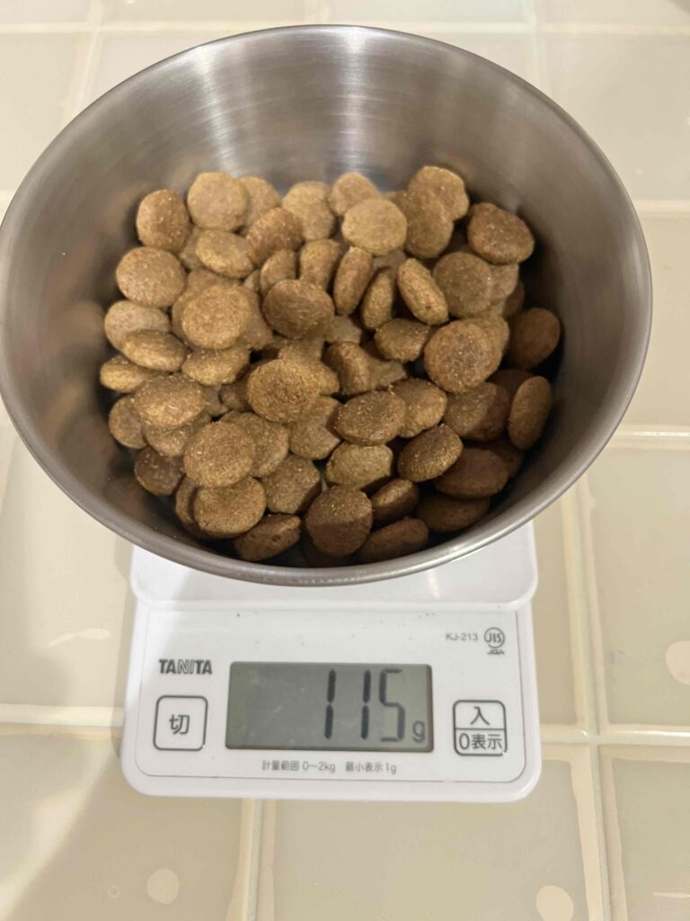 ララちゃん:女の子で2歳で31㎏の食事(運動量の少ない時期)